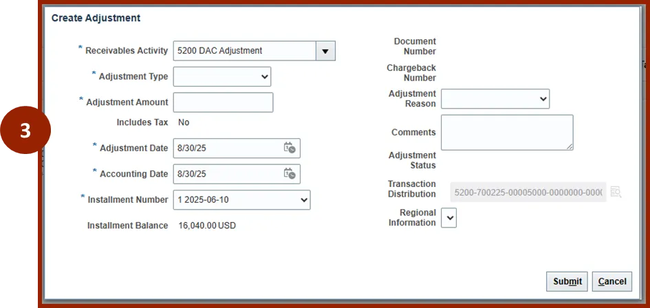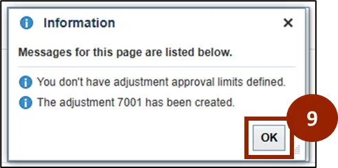 Step 3.    A Create Adjustment window appears.