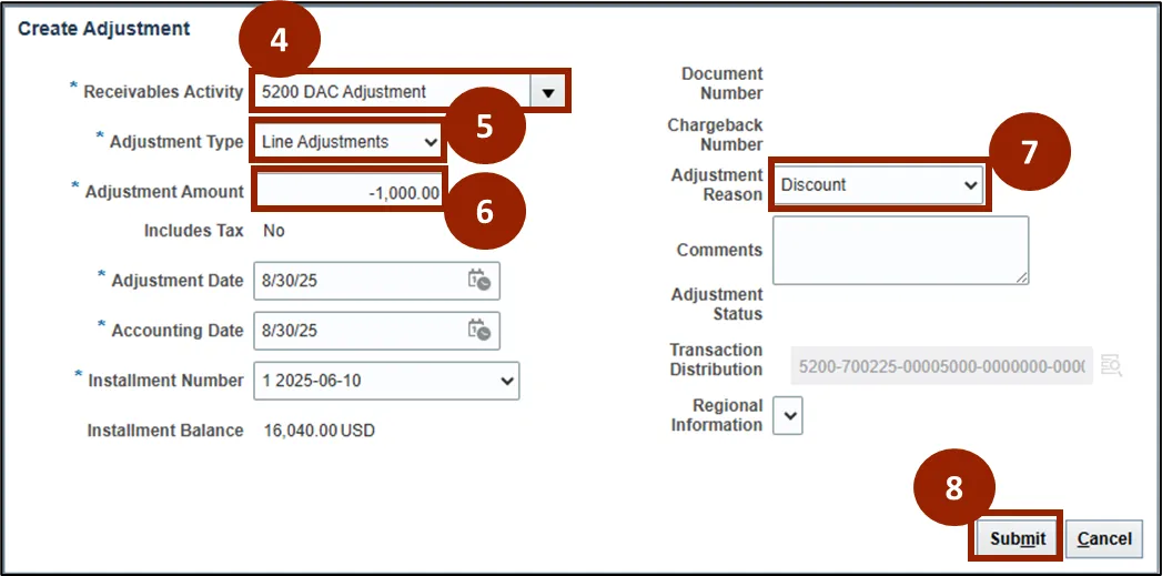 Step 6.    In Adjustment Amount, input a negative value (e.g. -1000.00).