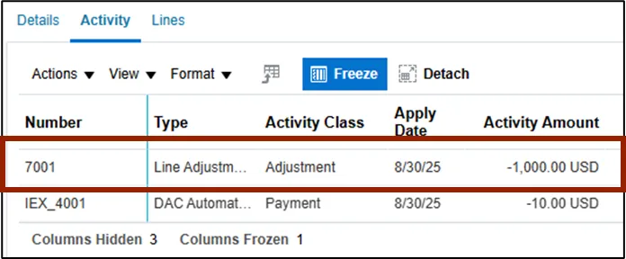 •    The adjustment appears in the Activity tab of the Details section.