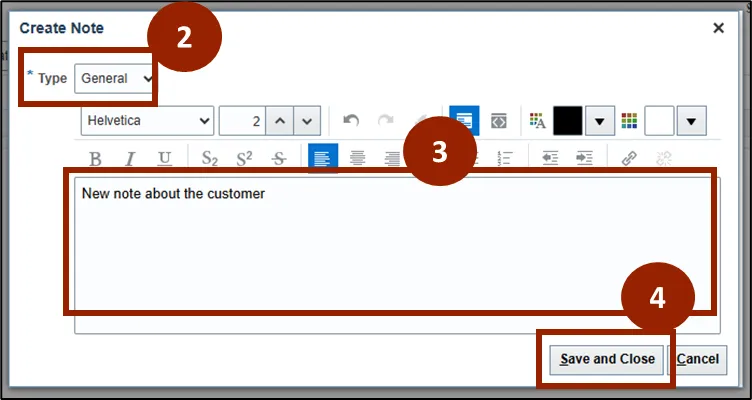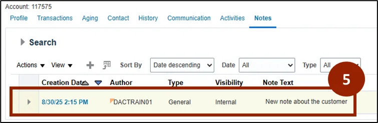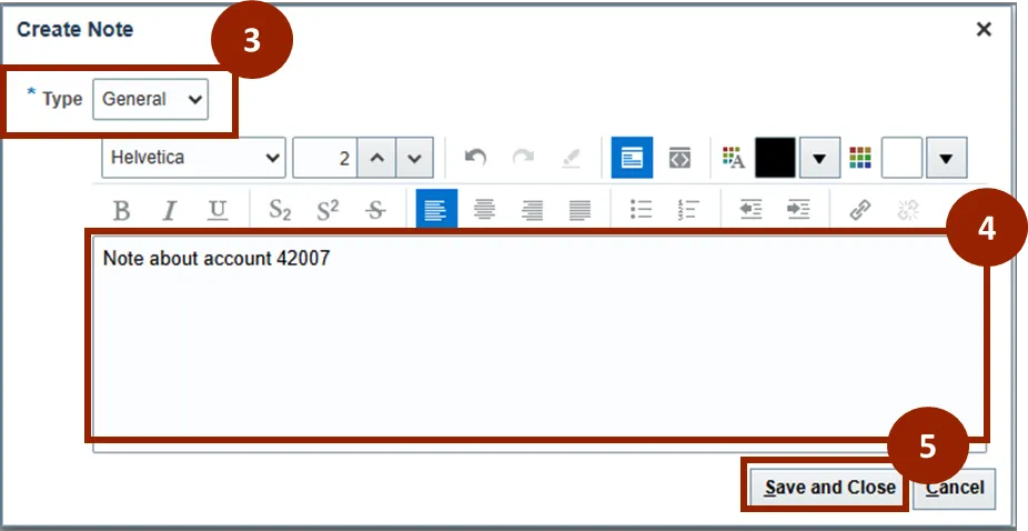 To add a new note to a Customer account, follow the steps below. There are 5 steps to complete this process.