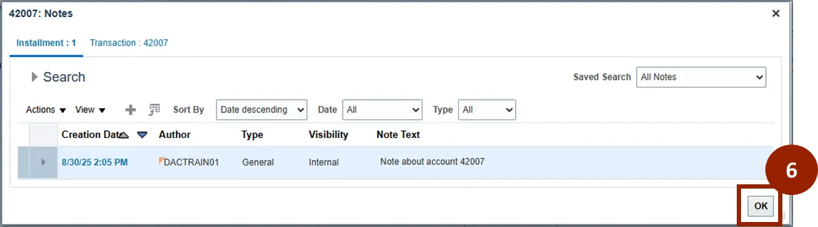 Step 6.    In the Notes window, click OK.