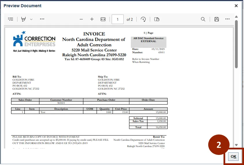 To preview an invoice, follow the steps below. There are 2 steps to complete this process.