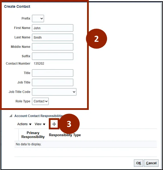 Step 3.    To assign responsibility to the contact, click the Plus (+) icon in the Account Contact Responsibilities section.