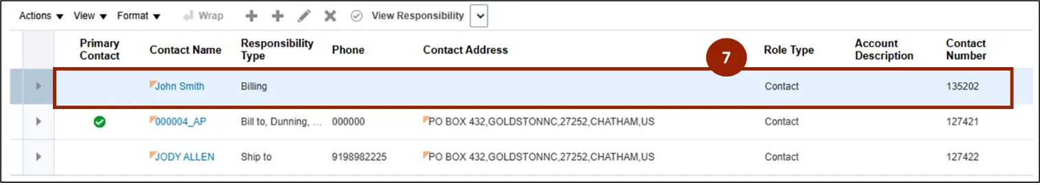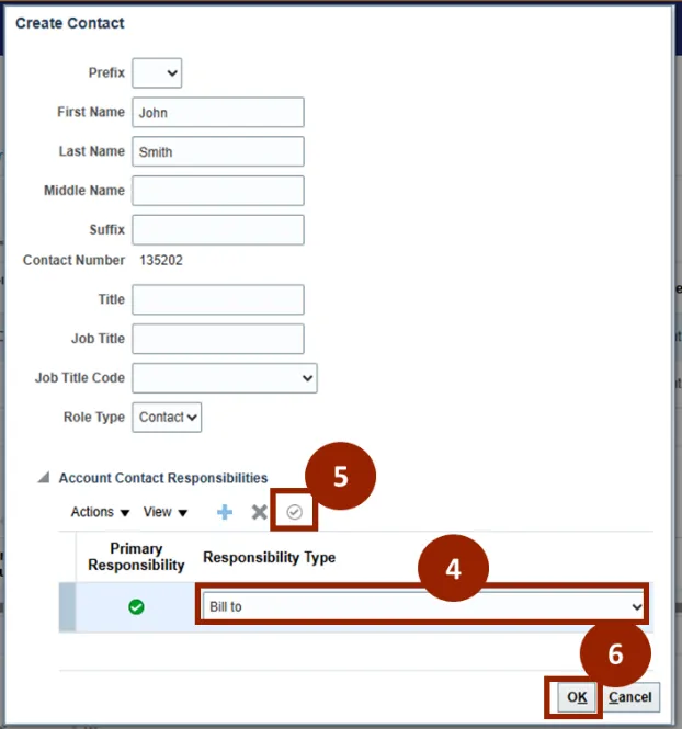 Step 4.    Select the appropriate responsibility type from the drop-down (e.g. Bill to).