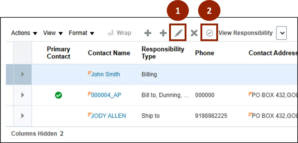 Step 5.    Select the encircled checkmark to assign that responsibility as the contact’s primary responsibility.