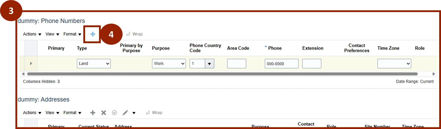 Step 4.    Click the Plus (+) icon in the appropriate table to add the new contact information.
