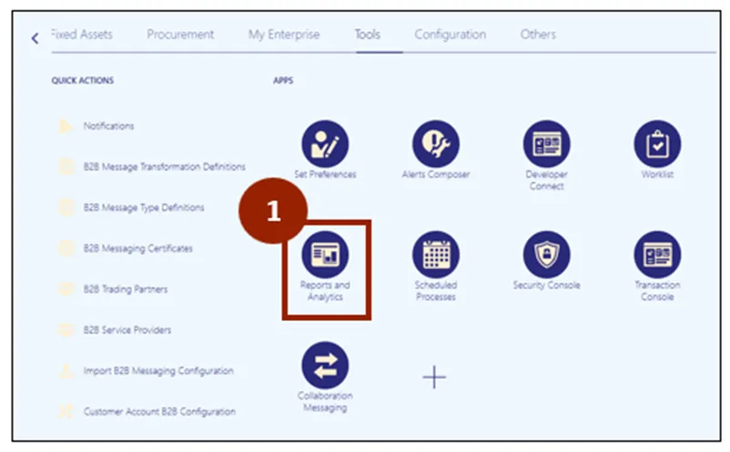 Step 1. On the Tools tab of the Home page, click on the Reports and Analytics app.