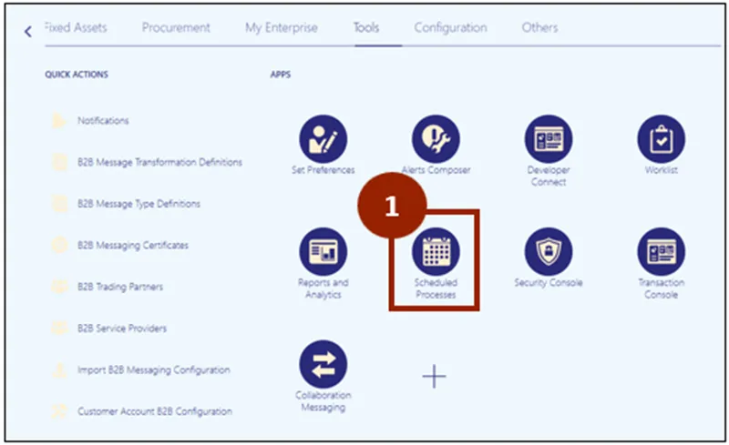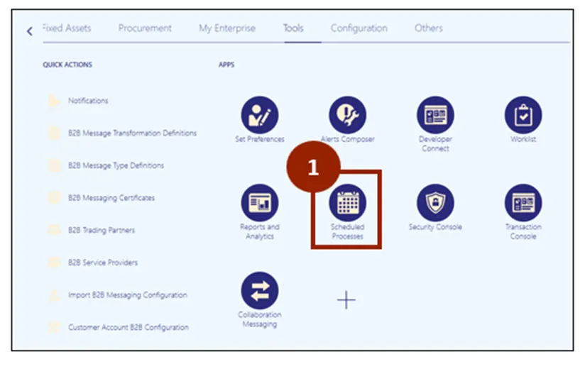 Step 1. On the Tools tab of the Home page, click on the Scheduled Processes app.