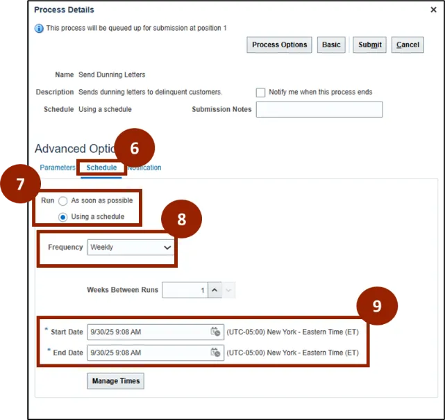 Step 6. On the Process Details page, under Advanced Options, click Schedule.