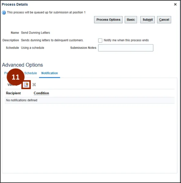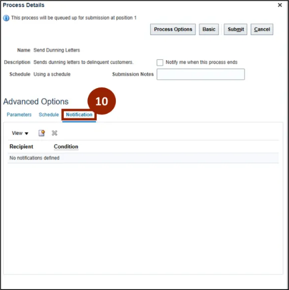 Step 10. On the Process Details page under Advanced Options, select the Notification tab.