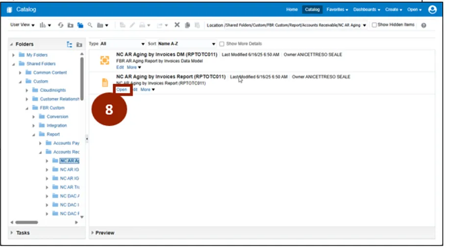Step 6. In the Report folder, select Accounts Receivable.