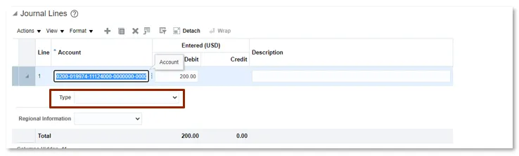 Step 10. Enter an amount in either the Debit or Credit fields (as appropriate) for each line that contains accounting information.