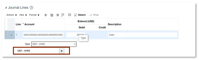 Step 12. A DEP – WIRE drop-down displays. Please select the correct Bank Account Number.
