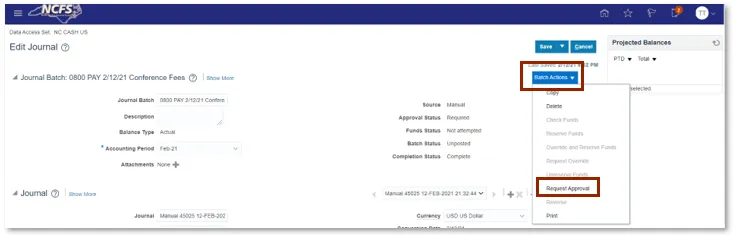 Step 14. Click Batch Actions, then click Request Approval.