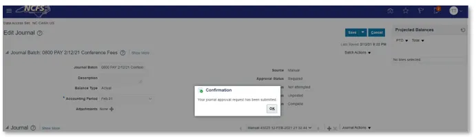 Once the journal has been submitted for approval, it must be reviewed. Journal Entries are reviewed by users with the Journal Approval role (as OSC Central Compliance or DST; depending on the transaction type). If a journal entry is rejected, the user who input the journal entry receives a rejection notification that includes the reason for rejection. Upon notification that a journal entry has been rejected, the journal entry user who entered the journal entry must then edit the necessary journal information and then resubmit for approval. For more information on review responsibilities and journal posting timelines please see the table below.