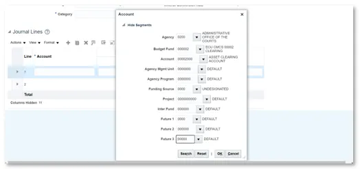 For NCFS Release 1, users need only enter Agency, Budget Fund, and Account. The remainder segments of the chart default to all zeros. These will be used for NCFS Release 3.