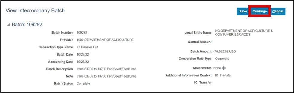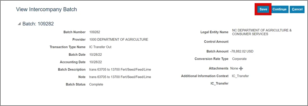 Step 12. Once on the Edit Intercompany Batch page, you can make the necessary changes and select the Save button to save your transaction.