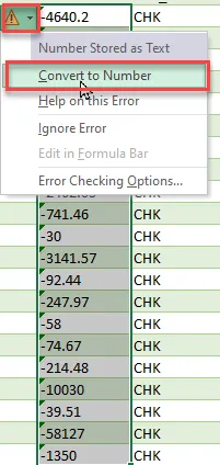Step 3.    Convert the amounts to numbers.
