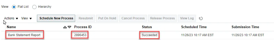 Step 2.    View and Republish the output of the Bank Statement Report: