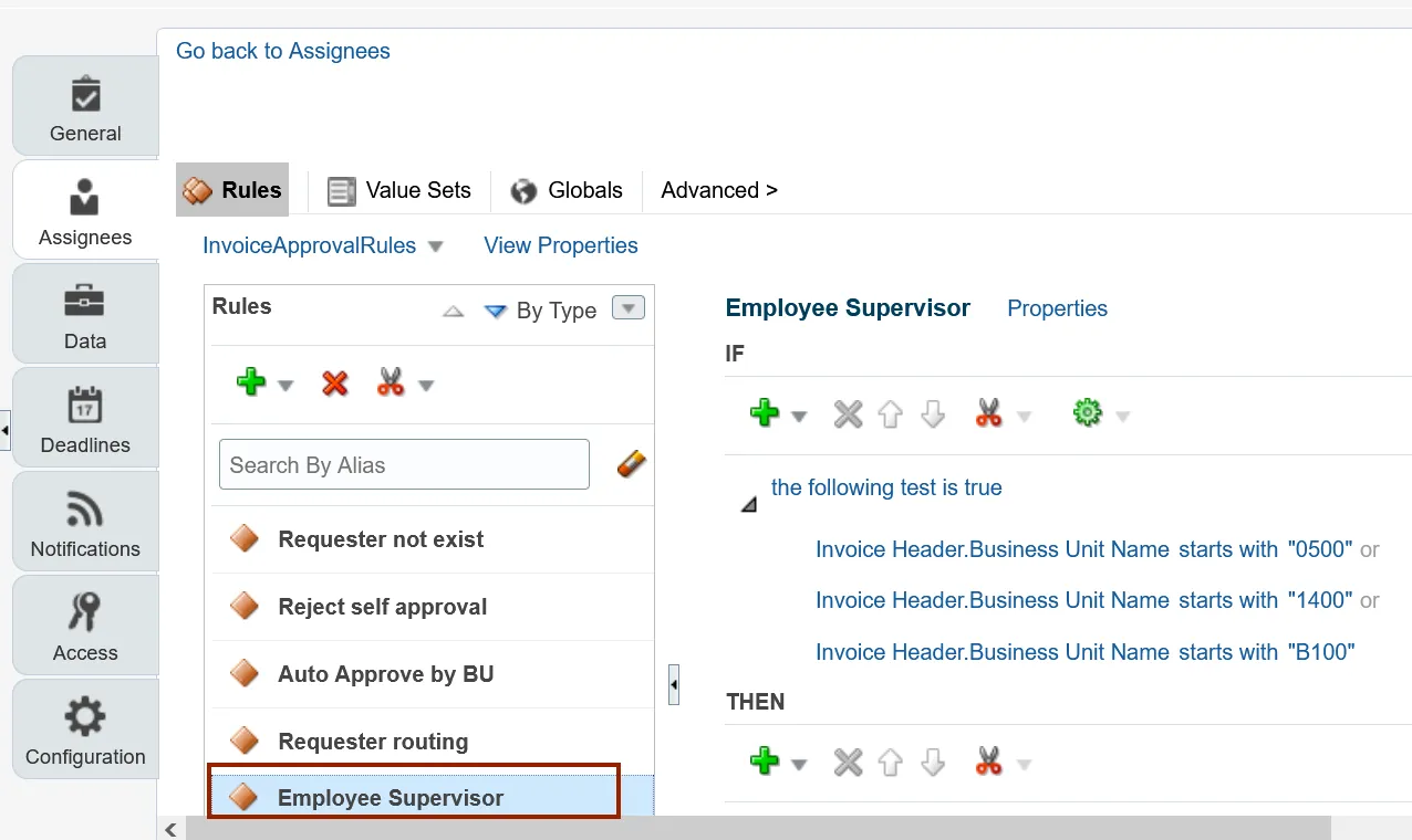 Step 8. Click the Edit icon to update the Invoice Approval Configuration and click the Assignees tab to open the Invoice Business Rules.