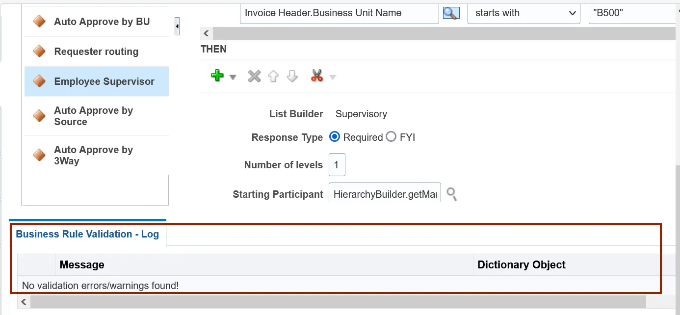 Step 20. Review the Validation log at the bottom of the Rules section to check if there are any errors/warnings found. Correct the rules and re-validate in case of any errors/warnings found.