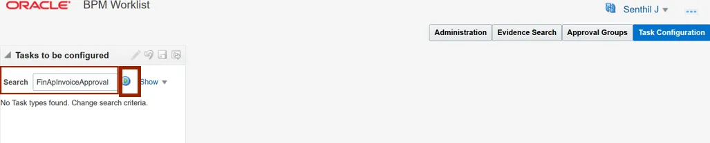 Step 5. In the top right corner of the BPM Worklist page, click the Task Configuration button.