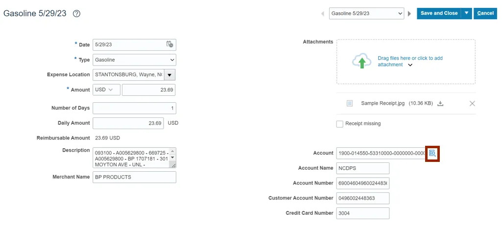 Step 5. Click the Date link on the Expense Items line item to view the expense line in detail.