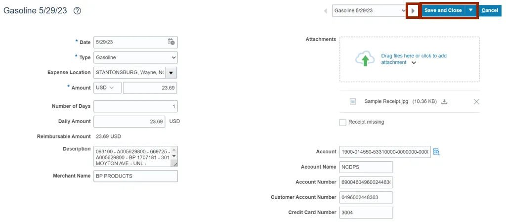 Step 9. You can press the right-arrow icon to go to the next line or Save and Close to go back to the report header.