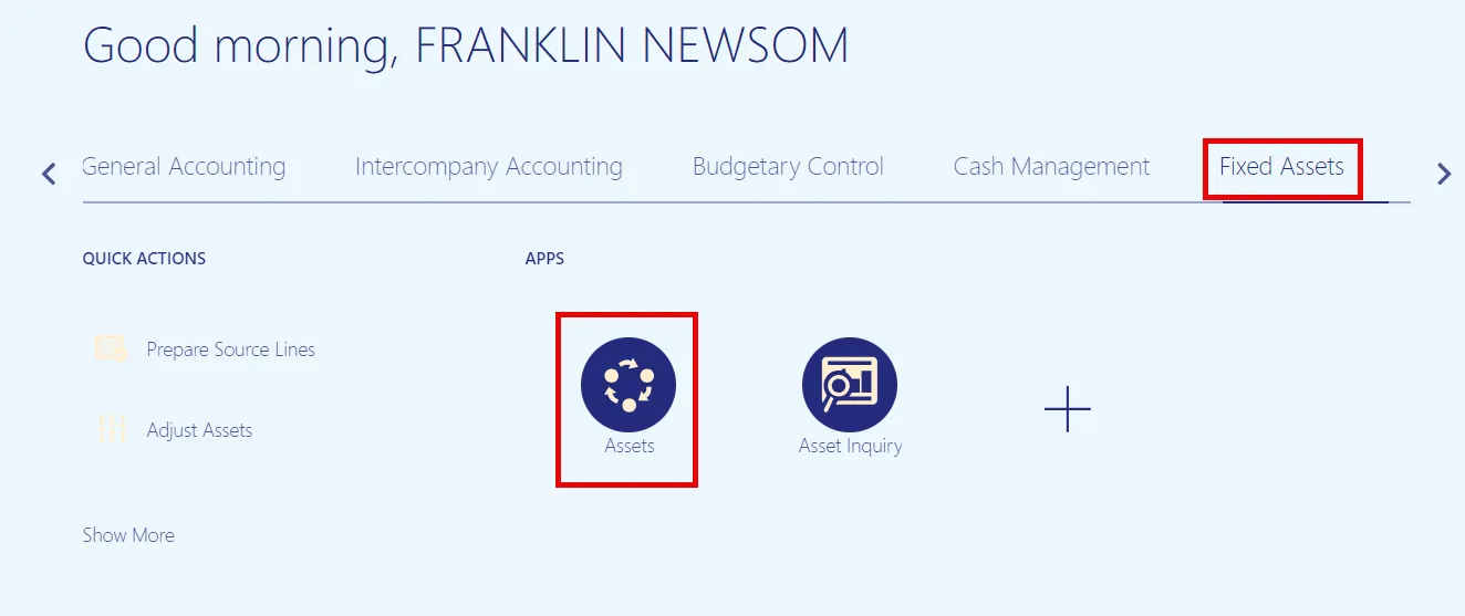 Step 2. On the Home page, under the Fixed Assets tab, click the Assets app.
