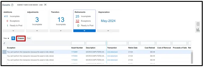 Removing Transaction Lines from the Fixed Assets Dashboard