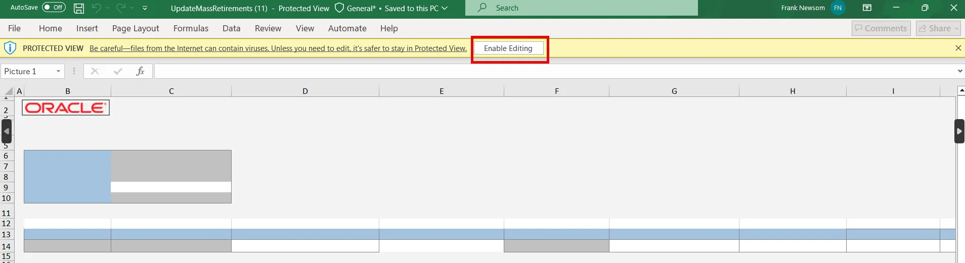 Step 7. A popup will appear asking to connect to NCFS. Click Yes. Another popup will appear requesting a log in. Log in to the NCFS linked excel sheet with your credentials used in Step 1 of this QRG.