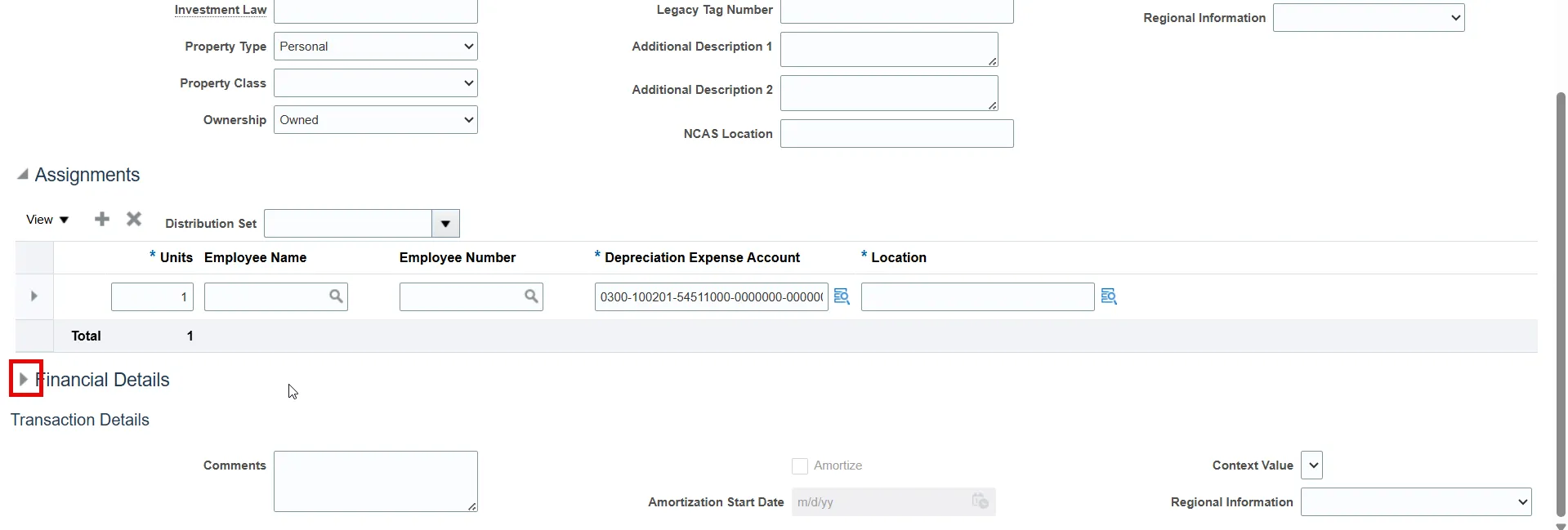 Step 5.    Open the Financial Details by clicking the arrow to the left.