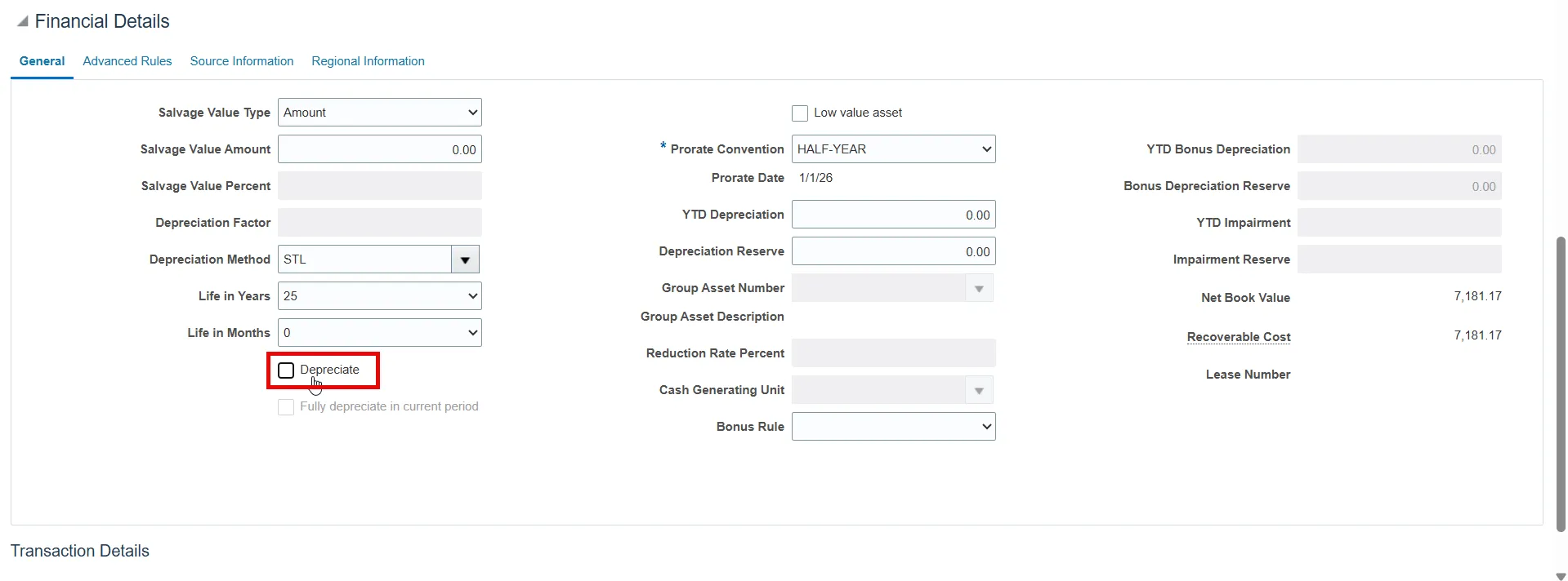 Step 6.    De-select the Depreciate toggle.