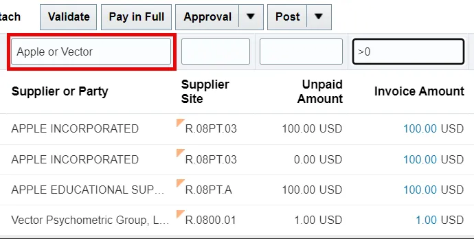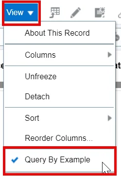- Apply search criteria or QBE filter values.