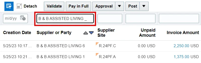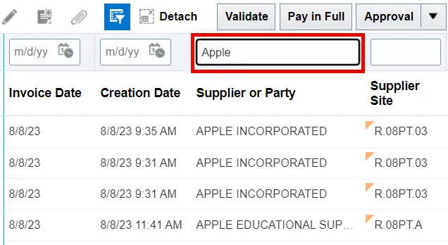 - Enter the desired filtering operators, wildcards, alphanumeric values, or dates into the corresponding QBE fields, then press the Enter key.