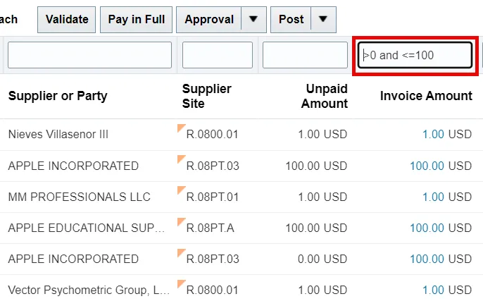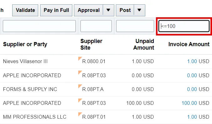 Step 3. The “and” operator can only be used in combination with other operators, for example: >0 and <=100.