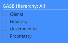 Then, select the GASB range you want to view.  For example, if you wanted to look at General Fund, you would select all 11xx GASB.