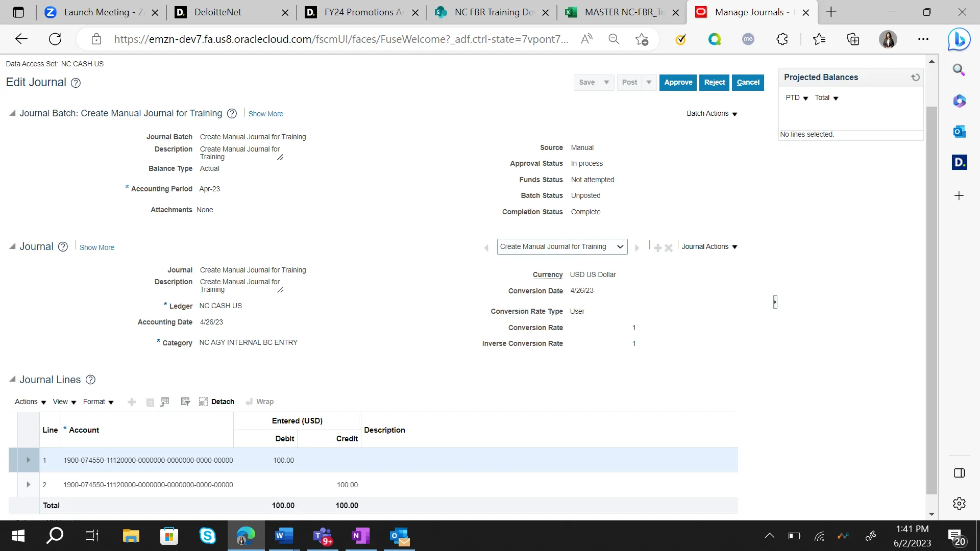 In this example, we choose Create Manual Journal for… link.