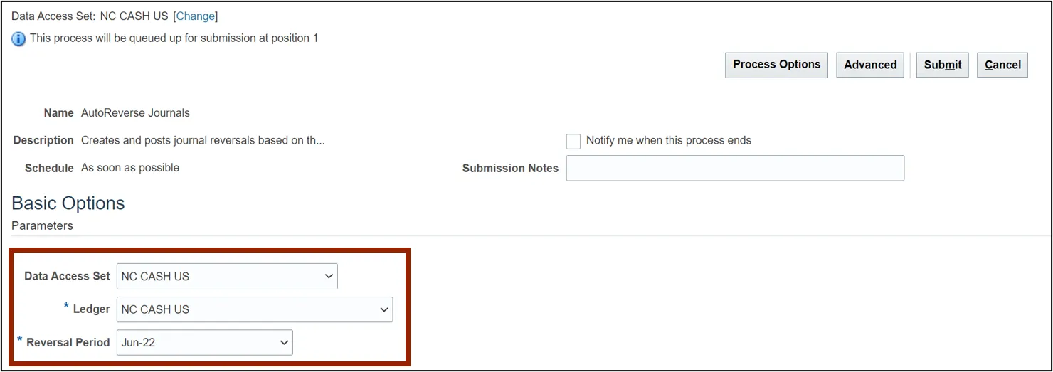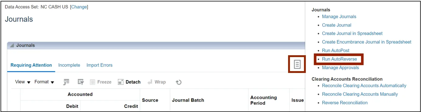 Note: AutoReverse will only act on journals with a category of 'NC AGY REVERSING ACCR'. Additionally, the journal must have its Reversal Period and Reversal Method already populated.