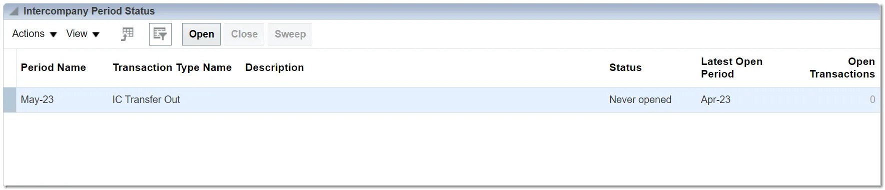 2) Intercompany Period Status – You can open and close periods by transaction type on the Intercompany Period Status page.