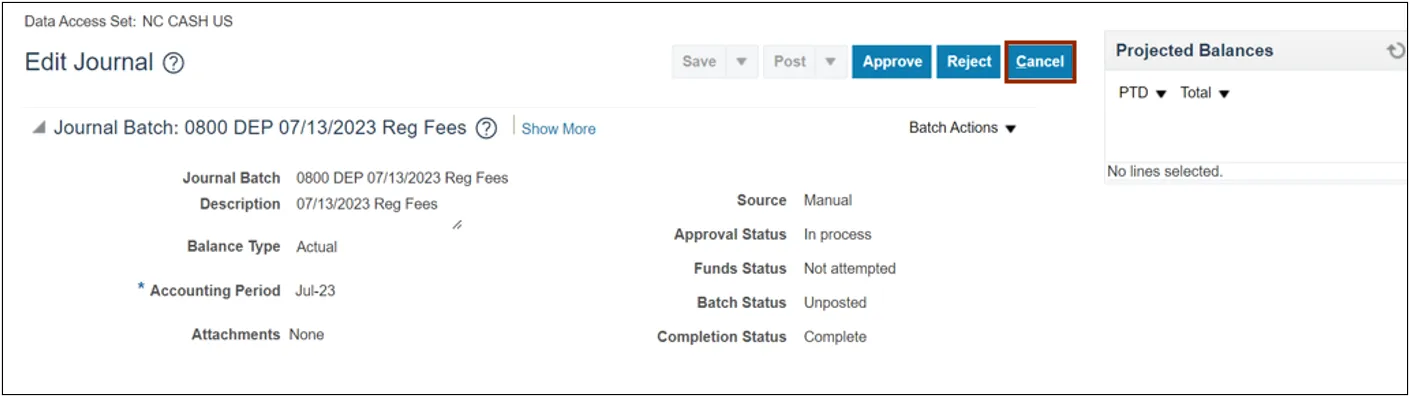 Approve Journals (Cash and Non-Cash) in NCFS using the above steps, will enable you to approve/reject a journal.