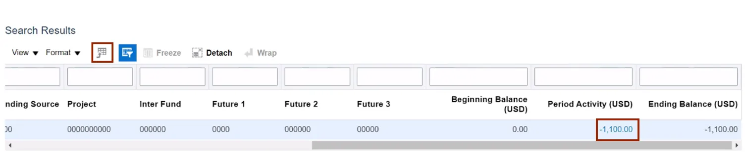 Step 6.    Scroll to the right to view additional fields. Click the Period Activity link to drill down further.
