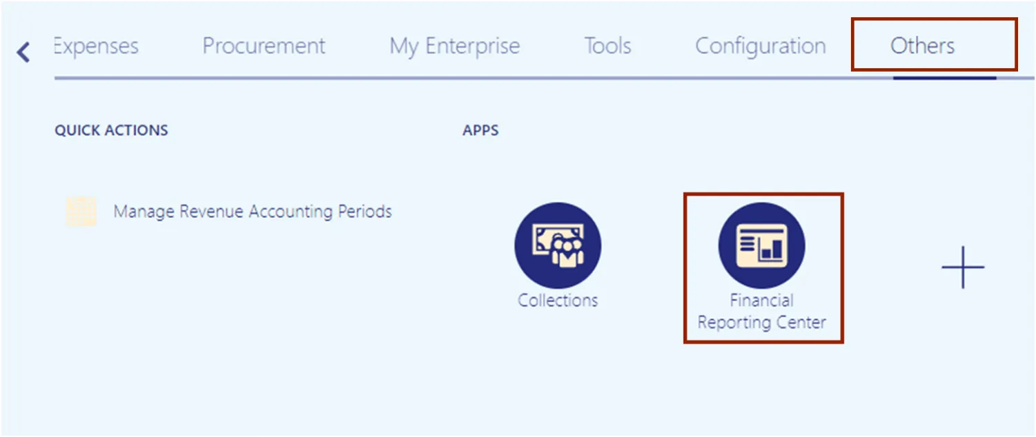Step 2.    On the Homepage, click the Others Tab. Click the Financial Reporting Center app.
