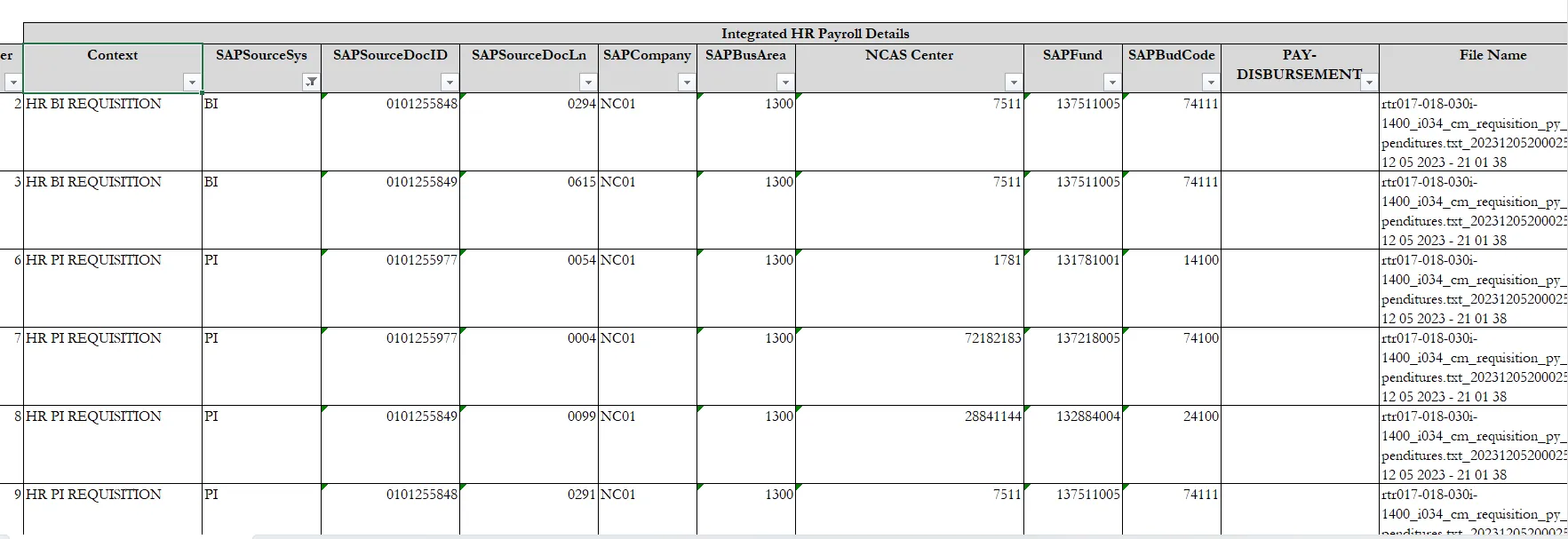 Agencies can use the report to see all the postings made by the Integrated HR/Payroll System interface into NCFS.