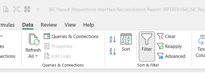 Step 6. The NC Payroll Interface Reconciliation Report is generated into Microsoft Excel.