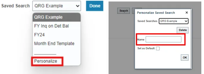 2. Select Personalize under saved search