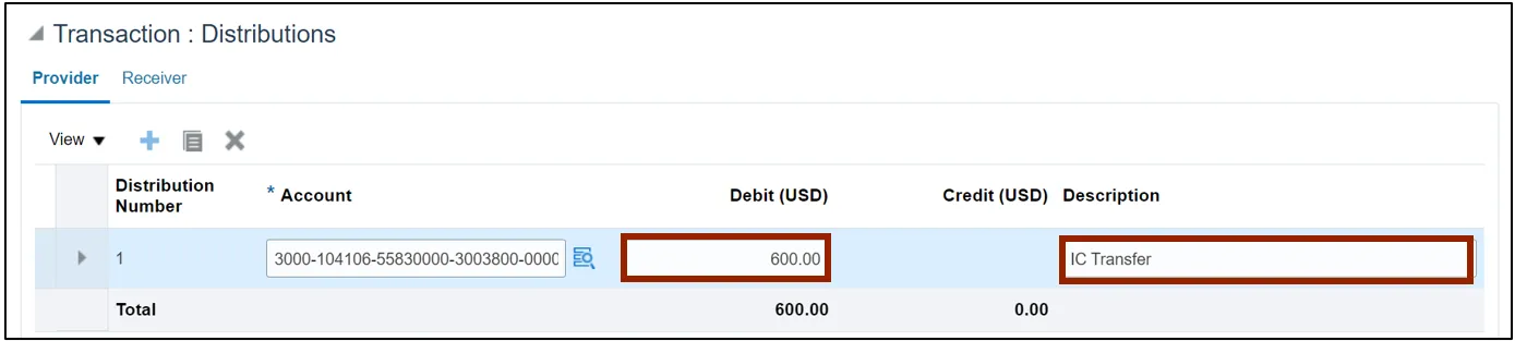 Step 12. Enter the distribution account details within the Account field. Click the Account icon to select individual account segment values from the Account pop-up.
