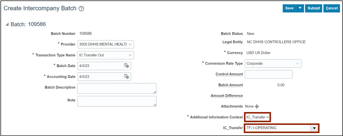 In this example, we choose the Provider as 3000 DHHS MENTAL HEALTH and Transaction Type Name as IC Transfer Out.