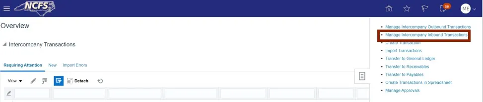 Step 10. Click the Manage Intercompany Inbound Transactions option.