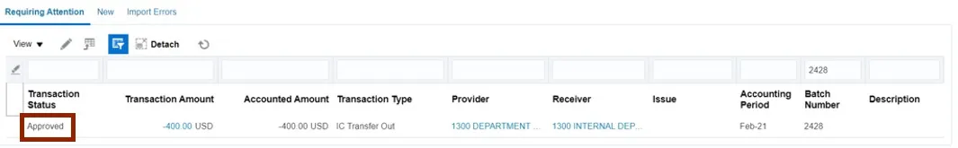 After following the steps above, the user can reverse the transfer. This results in the GL account balances being updated for both the providing and receiving agency and is reflected in the Cash Availability report. Once an IC transfer has been submitted for reversal it is approved in the next AutoPost run.
